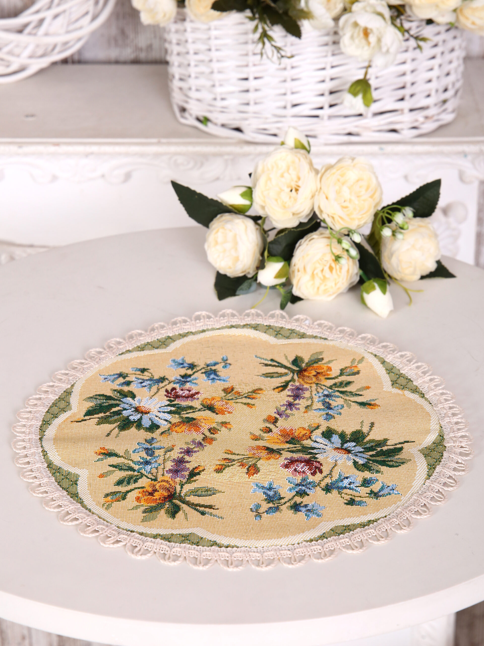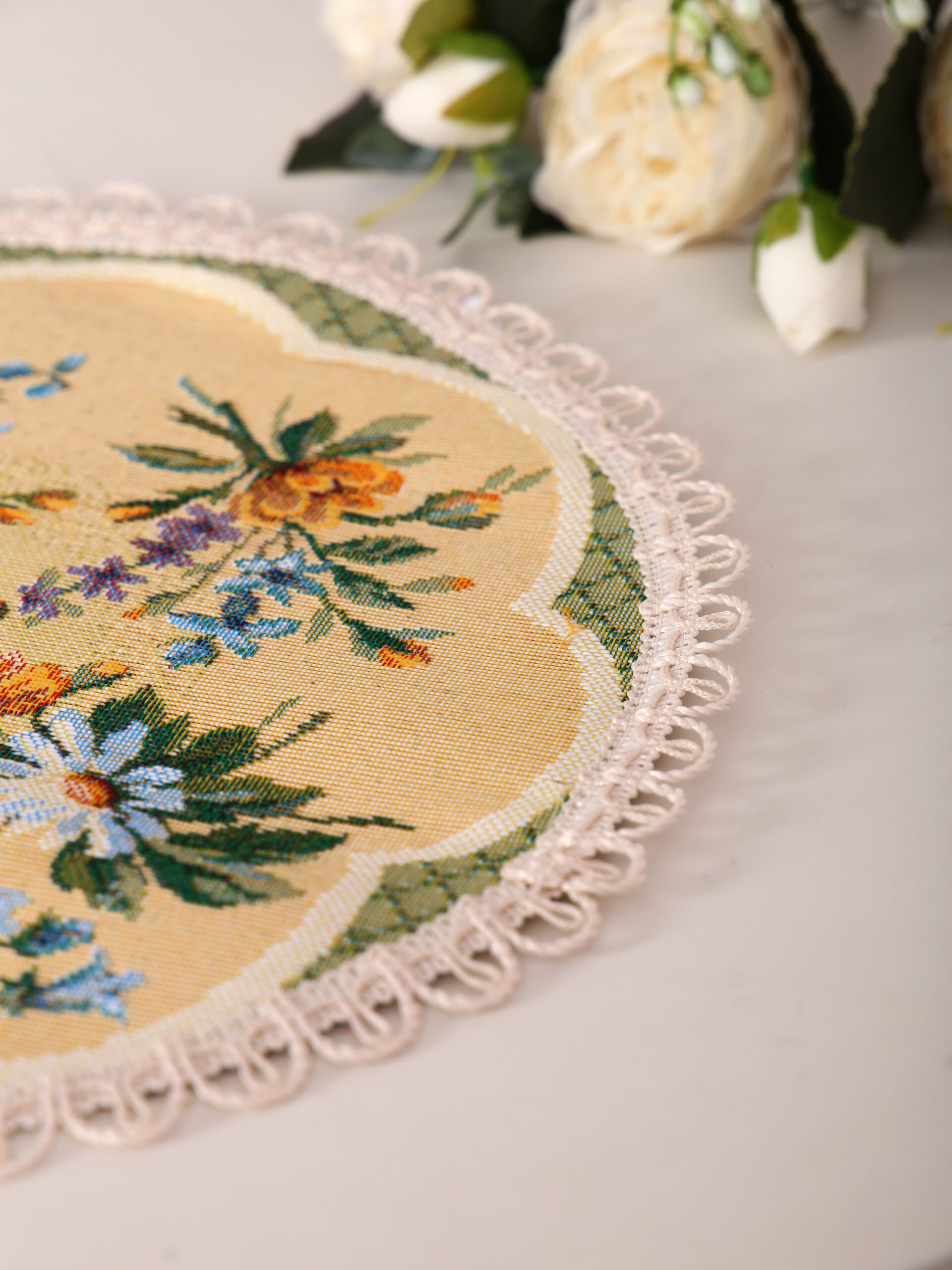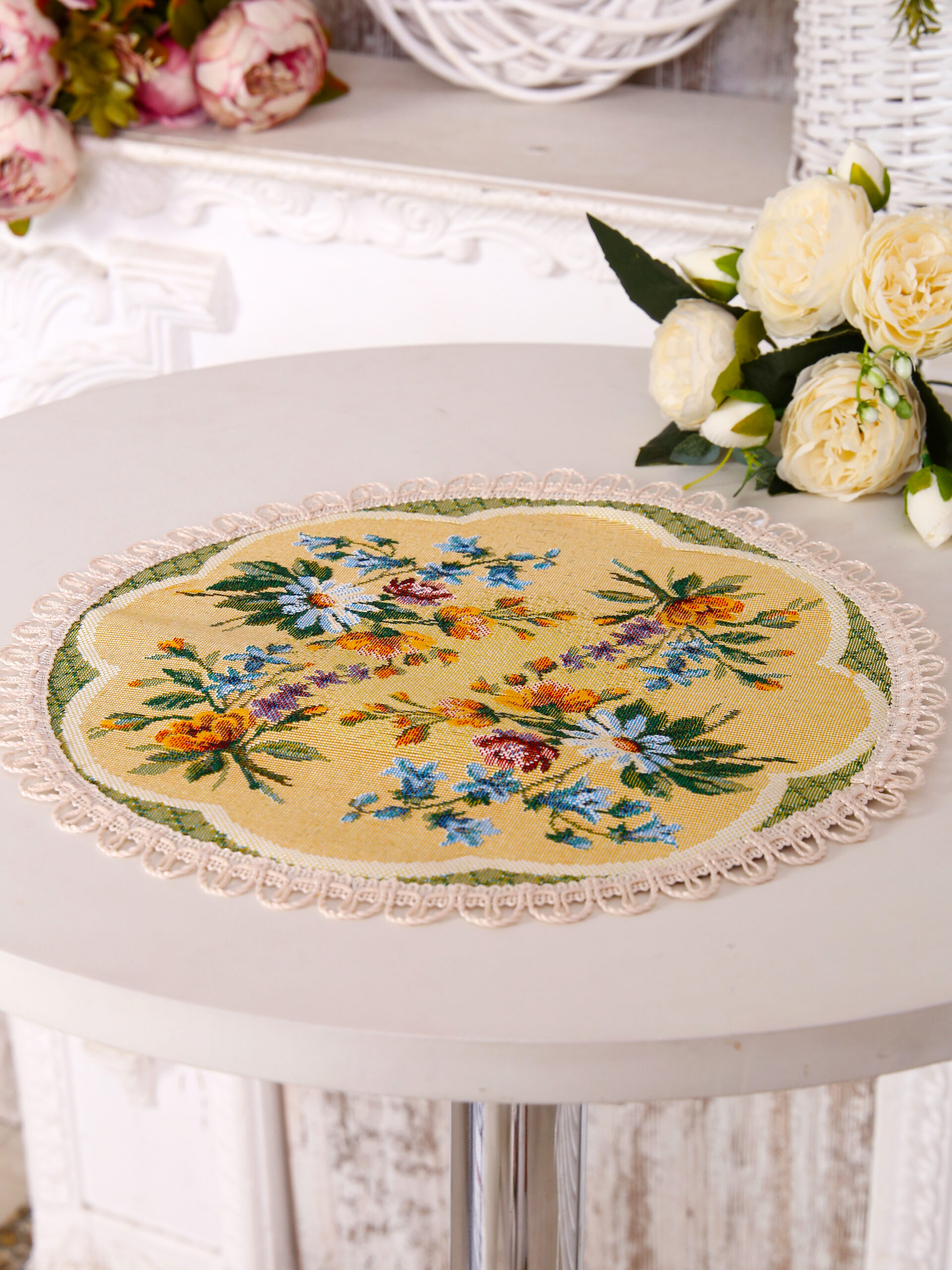 Гобеленовая салфетка «Цветочное кружево» — элегантный и стильный элемент, который поможет очаровать своим безупречным вкусом любого гостя!